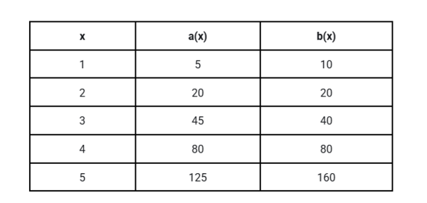 Observe using graphs and tables that a quantity increasing exponentially eventually exceeds a quantity increasing linearly, quadratically, or (more generally) as a polynomial function.